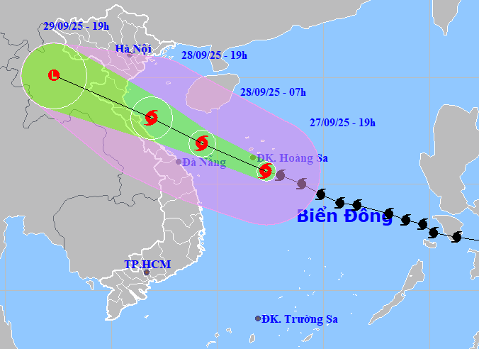 Trung tâm Dự báo Khí tượng Thủy văn quốc gia cho biết 19h ngày 27/9, tâm bão Bualoi cách đặc khu Hoàng Sa khoảng 120 km về phía nam, cách Đà Nẵng 460 km về phía đông đông nam. Sức gió mạnh nhất 133 km/h, cấp 12, giật cấp 15, di chuyển theo hướng tây tây bắc với tốc độ 30-35 km/h.