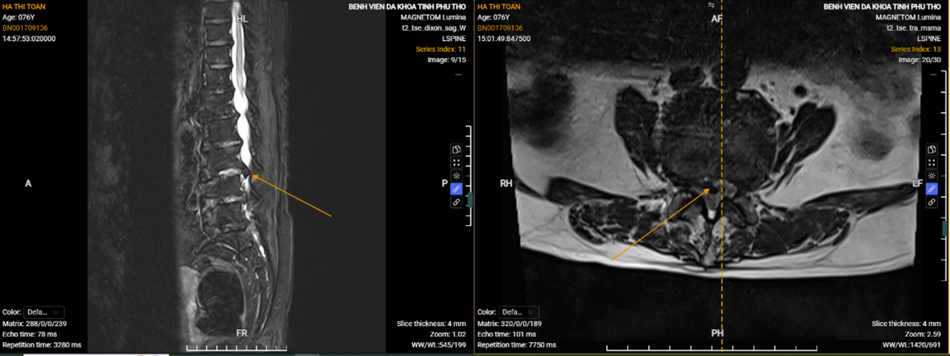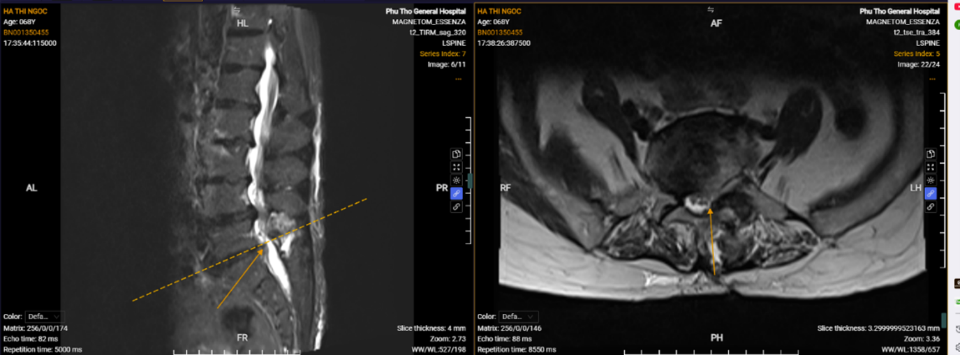 Hình ảnh phim chụp thể hiện vị trí thoát vị của người bệnh Hà Thị Toản.