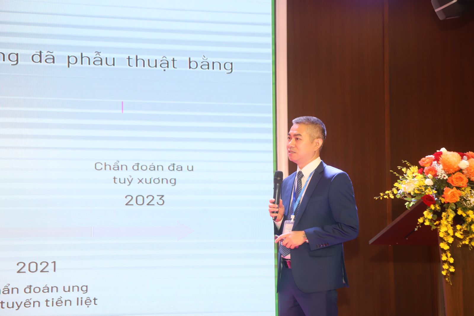 ThS. Bùi Văn Thắng – Trưởng phòng Điều dưỡng bệnh viện ĐKQT Vinmec Times City báo cáo khoa học. Ảnh: LT.
