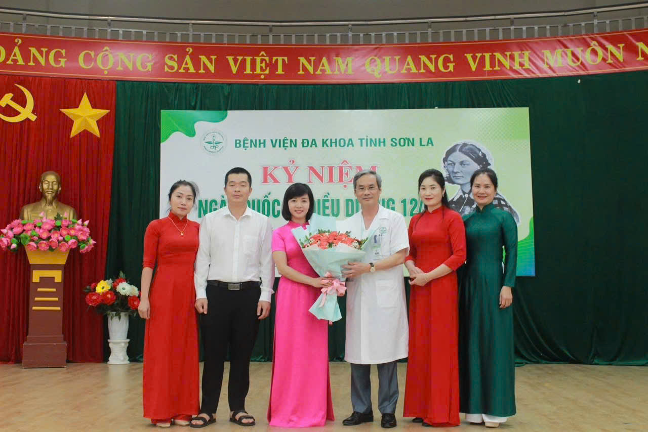 Giám đốc bệnh viện Đa khoa Sơn La tặng hoa chúc mừng Chi hội Điều dưỡng Bệnh viện Đa khoa tỉnh Sơn La nhân ngày quốc tế điều dưỡng.