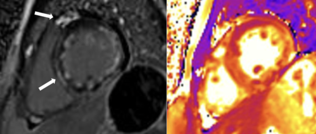 Kết quả chụp cộng hưởng từ tim sau đó ghi nhận tình trạng viêm cấp tính ở cơ tim và màng ngoài tim, phù hợp với chẩn đoán viêm cơ tim cấp.