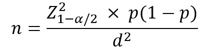 Cỡ mẫu được tính theo công thức ước lượng tỷ lệ cho nghiên cứu mô tả: