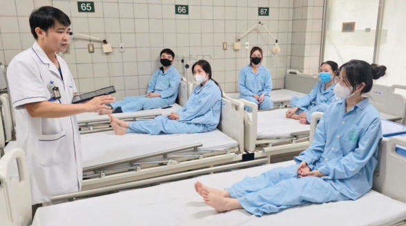 Trong thực hành hàng ngày, điều dưỡng trực tiếp hướng dẫn người bệnh thực hiện các bài vận động trị liệu phù hợp, từ kéo giãn cơ, tăng cường sức mạnh đến điều chỉnh tư thế và cải thiện tầm vận động. Những bài tập này có thể được thực hiện ngay tại bệnh viện hoặc duy trì tại nhà, tùy theo tình trạng và khả năng của từng người. Bên cạnh đó, các kỹ thuật hỗ trợ như xoa bóp, chườm nóng hoặc chườm lạnh cũng được áp dụng linh hoạt nhằm giảm căng cơ, cải thiện tuần hoàn, hạn chế viêm và góp phần giúp người bệnh ngủ sâu hơn.