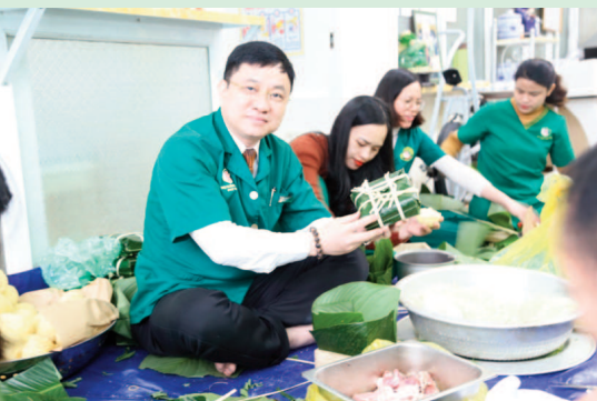 Tiến sĩ – Lương y Phùng Tuấn Giang gói bánh chưng truyền thống cùng nhân viên của Nhà thuốc Thọ Xuân Đường để đón Tết Nguyên Đán.