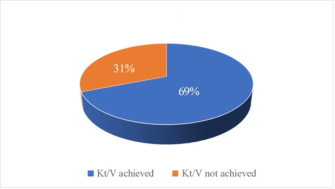 The mean Kt/V was 1.33 ± 0.32, with 69% of cases achieving the KDOQI-recommended target (Kt/V ≥ 1.2).