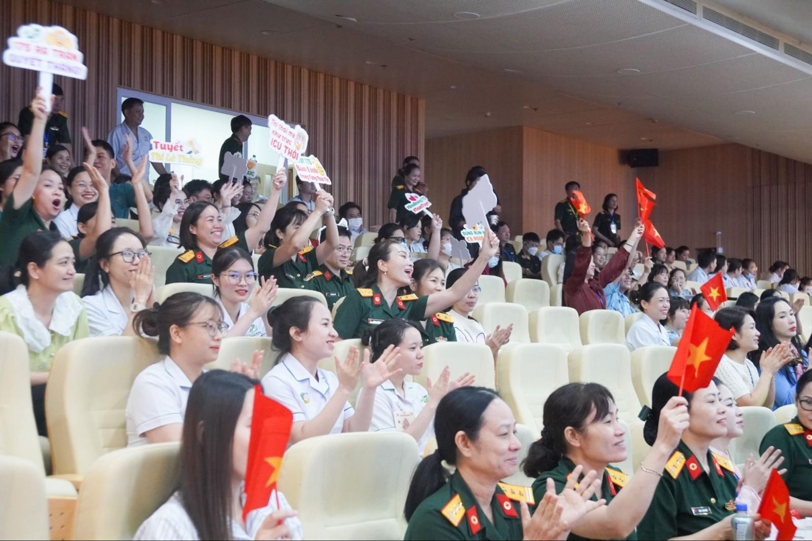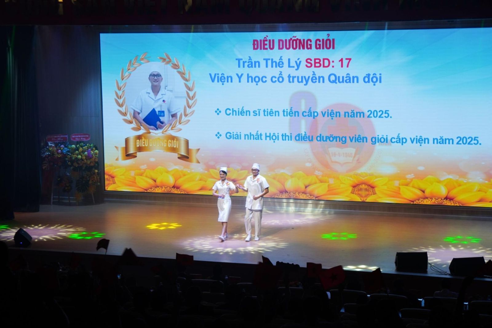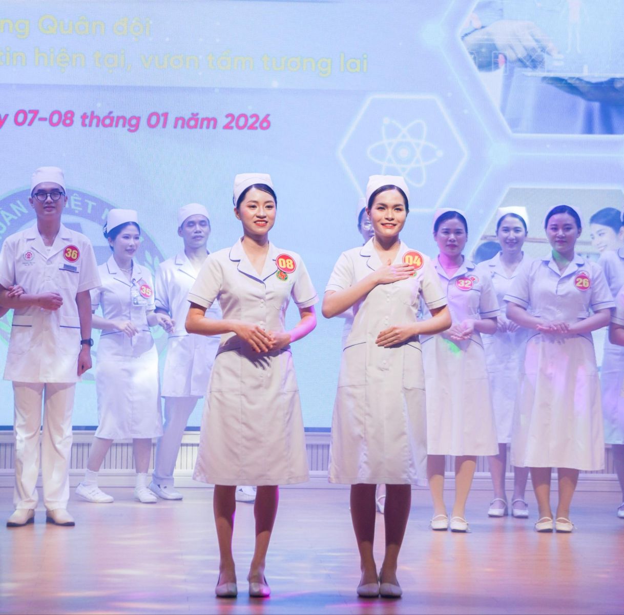 Không khí hội thi diễn ra sôi nổi, nghiêm túc nhưng cũng đầy hào hứng. Những màn trình diễn trang phục y tế được đầu tư chỉn chu, thể hiện rõ hình ảnh người điều dưỡng quân y chuẩn mực, chuyên nghiệp, thân thiện. Phần thi giao tiếp, ứng xử mang đến nhiều tình huống sát thực tế, phản ánh rõ nét vai trò quan trọng của kỹ năng mềm trong nâng cao chất lượng dịch vụ y tế.