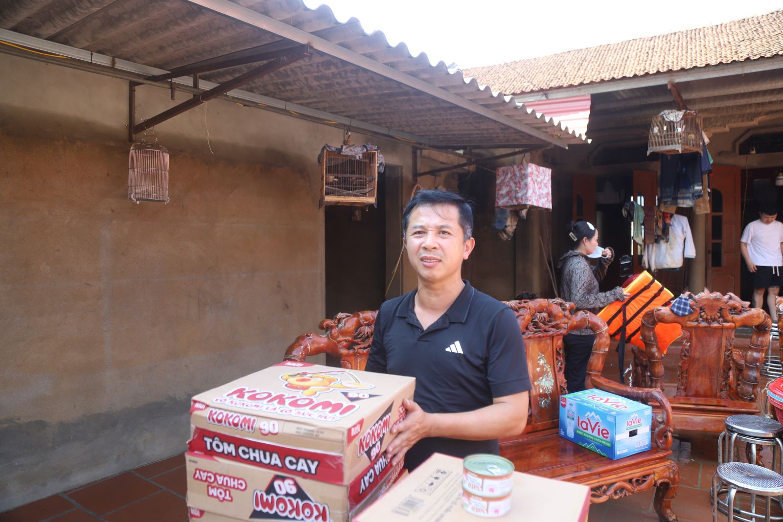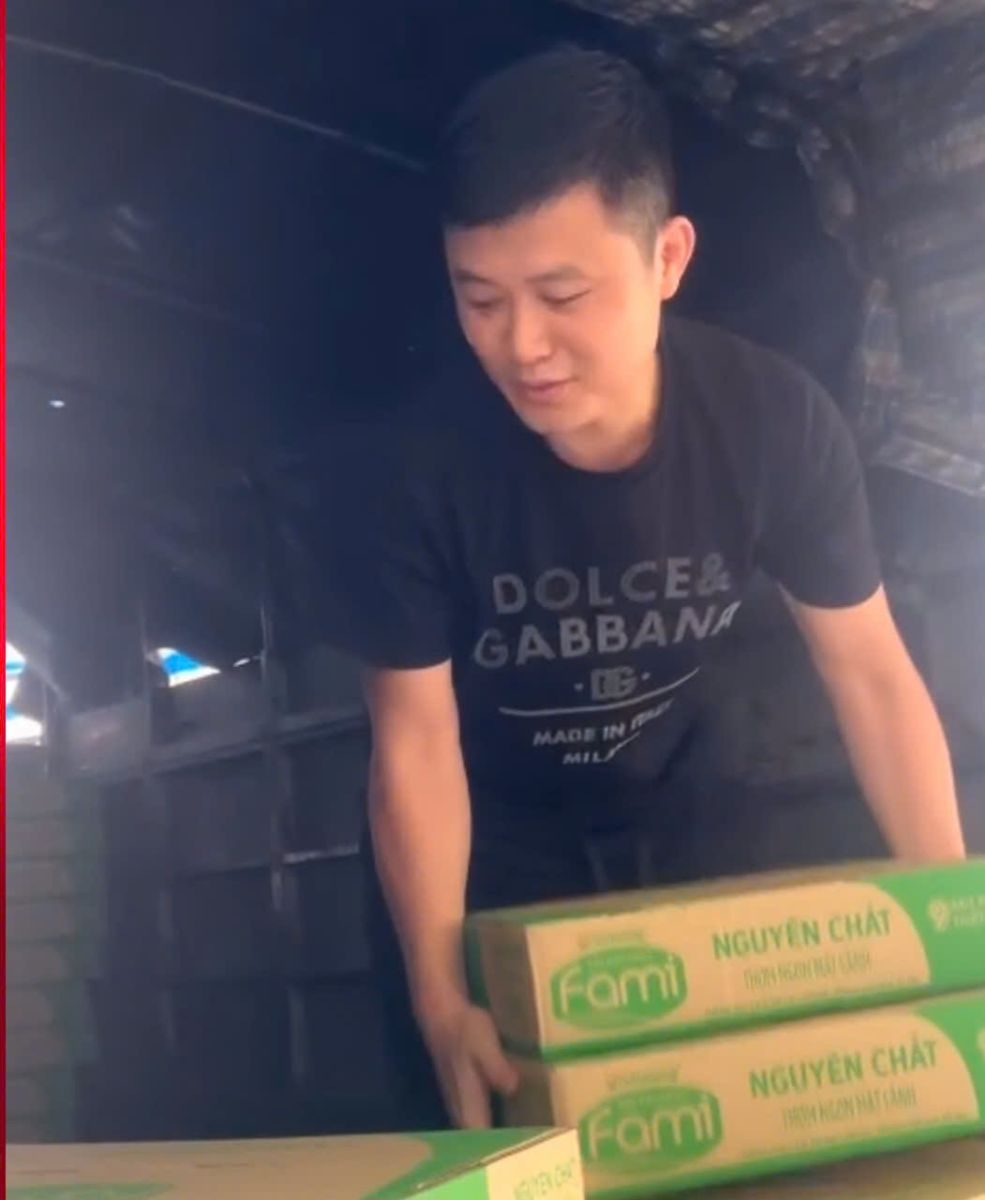 Ông Lưu Hải Long - Công ty TNHH Long Sơn Phúc Thọ bóc hàng cứu trợ lên xe từ 5h sáng.