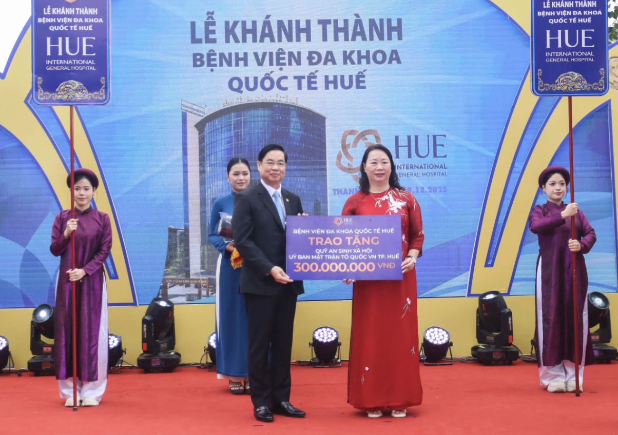 Nhân dịp khánh thành, đại diện bệnh viện đã trao tặng 300 triệu đồng từ Quỹ An sinh xã hội cho Ủy ban Mặt trận Tổ quốc Việt Nam TP Huế, thể hiện cam kết đồng hành cùng địa phương trong các hoạt động vì cộng đồng.