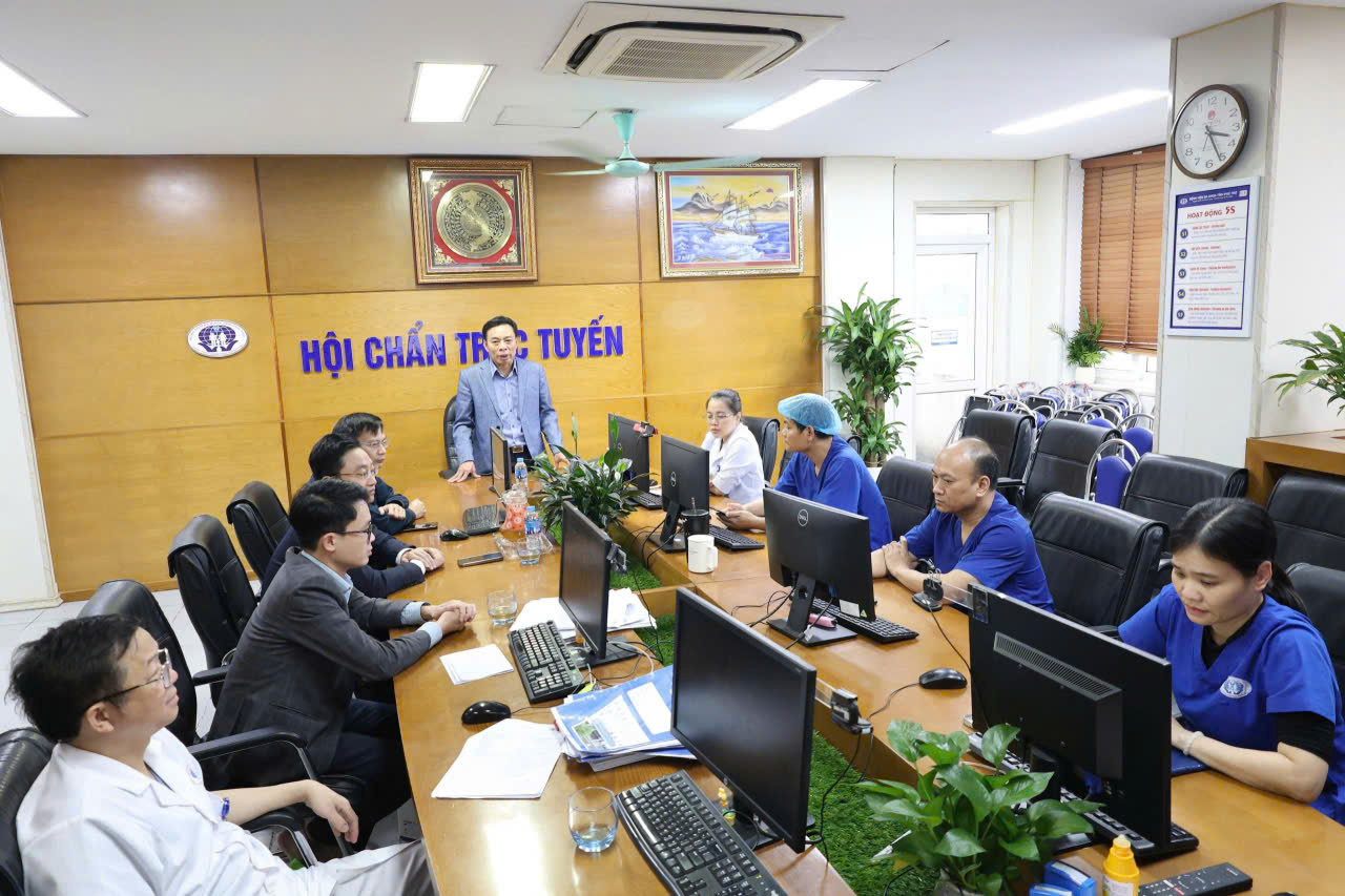 PGS.TS. Nguyễn Văn Sơn – Phó Giám đốc Bệnh viện Đa khoa tỉnh Phú Thọ cùng Ekip hội chẩn trực tuyến với các chuyên gia đầu ngành Bệnh viện Hữu nghị Việt Đức.