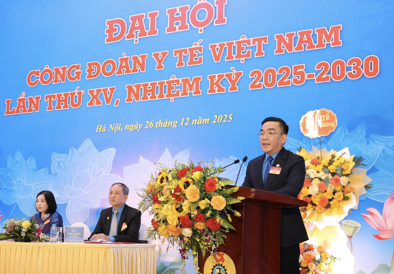 Ông Nguyễn Lương Tâm - Chủ tịch Công đoàn Y tế Việt Nam nhiệm kỳ 2025-2030 phát biểu.