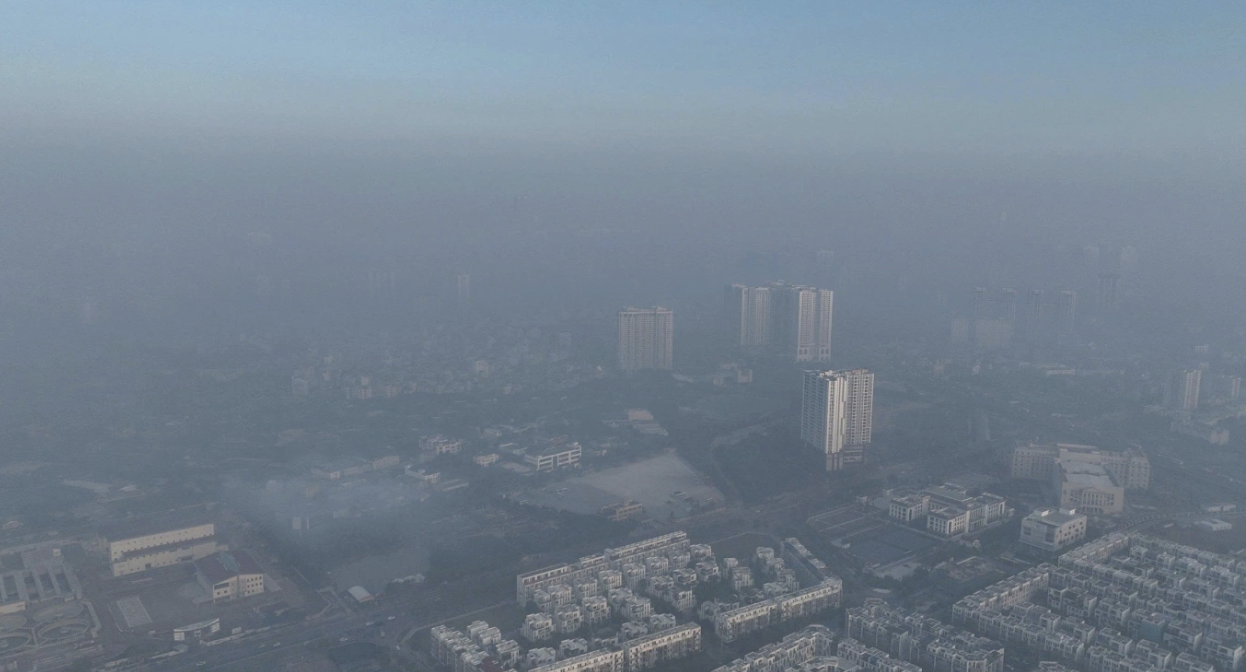 Quang cảnh không khí ô nhiễm tại Hà Nội khi nhìn từ trên cao.
