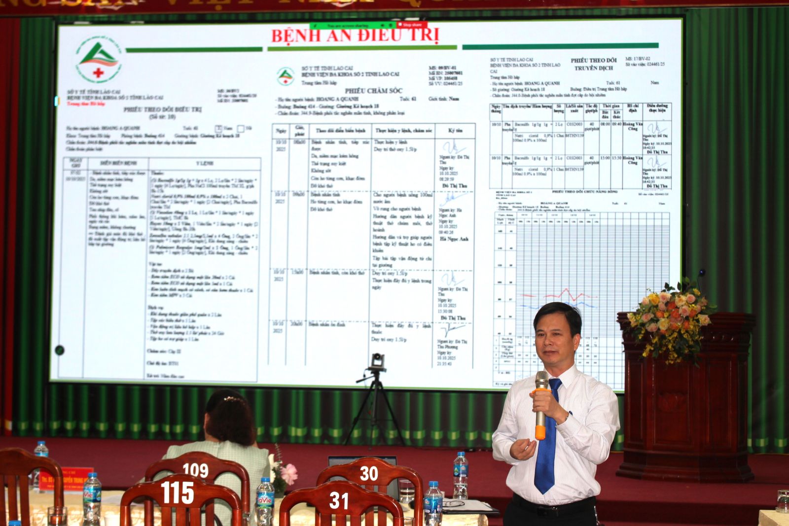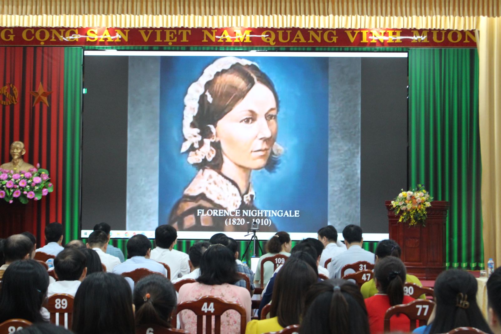Toàn thể đại biểu đã cùng nhau theo dõi những thước phim và hình ảnh tư liệu được trình chiếu tại Hội trường Sở Y tế Lào Cai, ghi nhận chặng đường phát triển của ngành Điều dưỡng