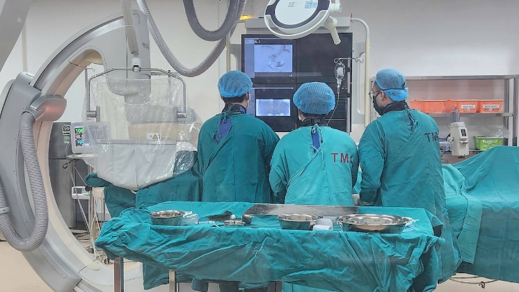 Ca can thiệp do ê-kíp can thiệp mạch của Khoa Chẩn đoán hình ảnh thực hiện với sự chỉ đạo trực tiếp của bác sĩ CKII Ngô Vĩnh Hoài, Phó Trưởng khoa. Nhờ hệ thống chụp mạch số hóa xóa nền (DSA), các bác sĩ đã xác định chính xác vị trí tổn thương và kiểm soát hoàn toàn điểm chảy máu.
