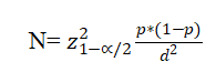 Trong đó N: cỡ mẫu cần thiết cho nghiên cứu; là hệ số tin cậy 95% =1,96 ( ngưỡng xác suất α = 0,05); d: sai số cho phép, trong nghiên cứu này chúng tôi áp dụng d =0,1; p tỷ lệ ước tính, trong nghiên cứu này chúng tôi chọn p = 0,5 chung cho tỷ lệ suy dinh dưỡng cả 3 phương pháp để có số mẫu lớn nhất. Áp dụng vào công thức ta thu được n= 96.
