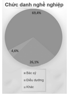 Nhận xét: TỈ lệ Bác sỹ chiếm đa số (69,4%), Điều dưỡng (26,1%), đối tượng khác (4,6%).