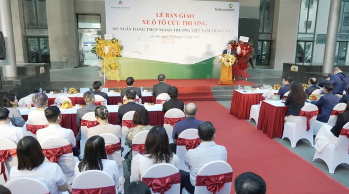 Chiều 22/12, Ngân hàng TMCP Ngoại thương Việt Nam (Vietcombank) đã tổ chức lễ trao tặng 01 xe cứu thương chuyên dụng hiện đại cho Bệnh viện Hữu Nghị, với tổng trị giá 2 tỷ 685 triệu đồng. Đây là hoạt động thiết thực nhằm hỗ trợ bệnh viện tăng cường năng lực cấp cứu, vận chuyển và chăm sóc người bệnh trong các tình huống khẩn cấp.