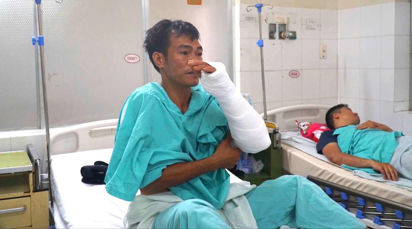 Anh Cương vừa được phẫu thuật tay xong và đang điều trị tại Bệnh viện Đa khoa tỉnh Khánh Hòa.