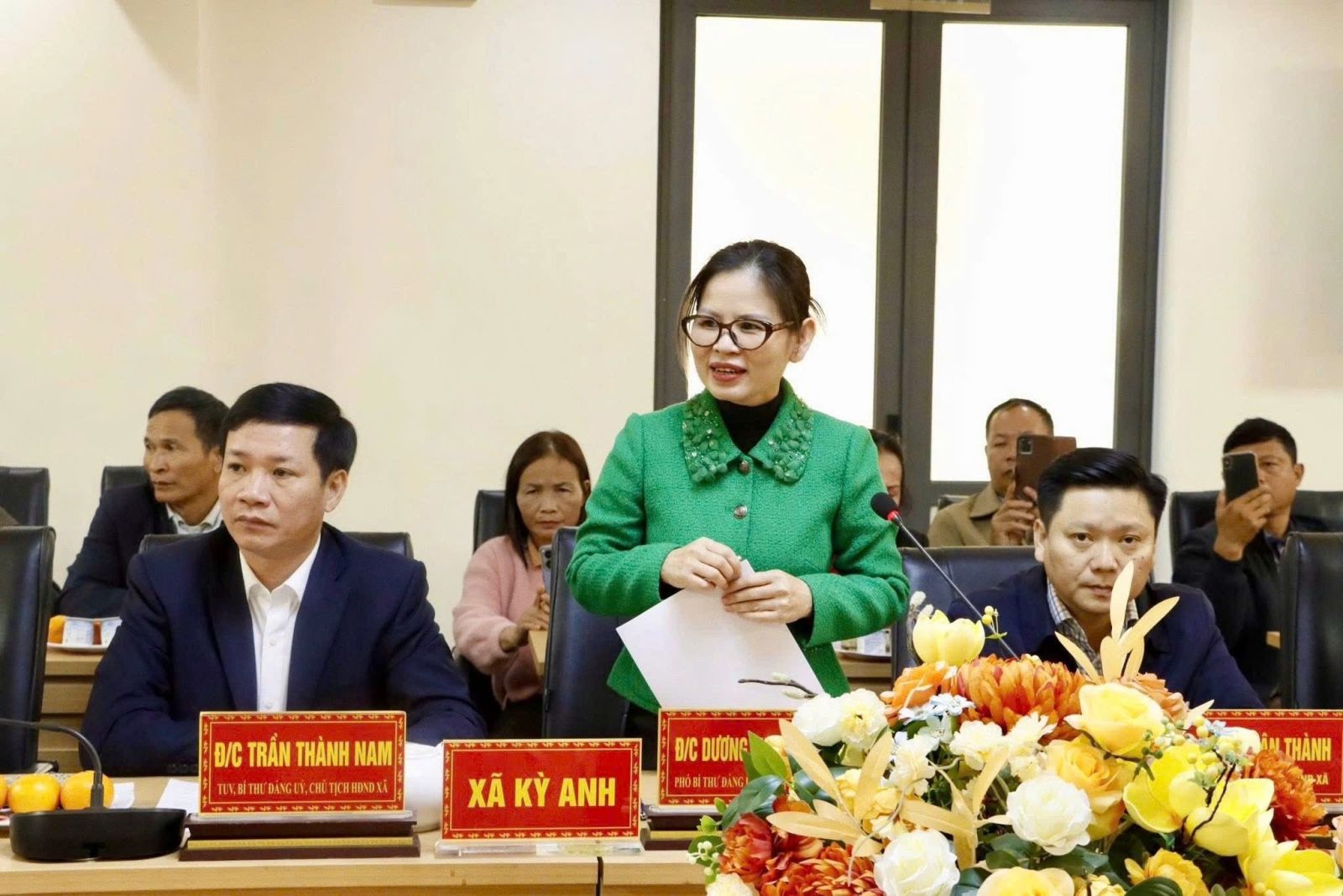 Tại đây, Chủ tịch UBND xã Kỳ Anh bà Dương Thị Vân Anh đã chia sẻ về hành trình đầy thách thức nhưng cũng rất tự hào sau khi sáp nhập từ 4 đơn vị hành chính (thị trấn Kỳ Đồng, xã Kỳ Giang, Kỳ Tiến, Kỳ Phú). Ngay sau khi đi vào hoạt động, xã đã kiện toàn Ban chỉ đạo tại 30/30 thôn, tạo sức bật mới cho phong trào xây dựng NTM.