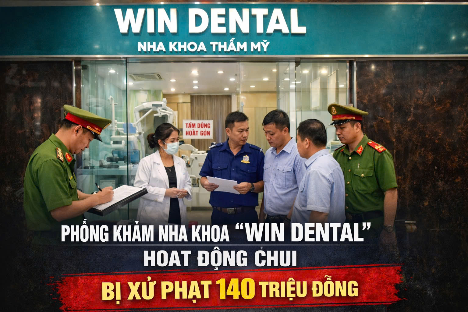Theo đó, phòng Khám Răng Hàm mặt – WIN DENTAL bị xử phạt hành chính tổng cộng 140.000.000 đồng đối với hai hành vi vi phạm. Ngoài ra, đình chỉ hoạt động của cơ sở trong thời hạn 18 tháng vì hành vi cung cấp dịch vụ khám bệnh, chữa bệnh mà không có giấy phép hoạt động khám bệnh, chữa bệnh.